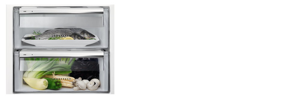 Das AEG LongFresh 0 °C Fach bietet die ultimative Umgebung für den Schutz der Lebensmittel. Der Bereich, der kälter als der Kühlschrank ist, wird auf 0 °C Grad gehalten, und ist die richtige Zone für Fisch, Fleisch oder feinere Erzeugnisse. Die integrierte Feuchtigkeitsregelung verhindert das Austrocknen. Für sorgfältig ausgewählte, aromareiche Erzeugnisse.