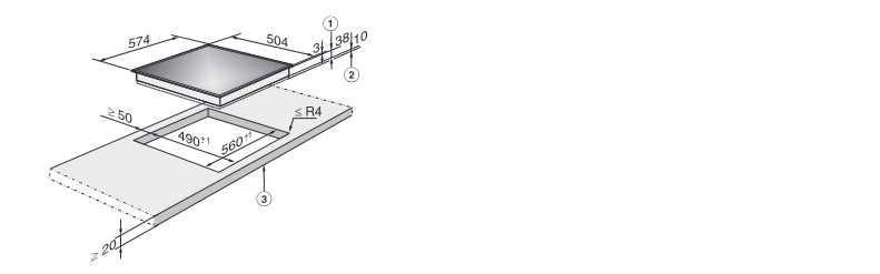 - Kochfeld mit ansprechendem Design - 574 mm breit mit umlaufendem Rahmen