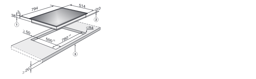 - Kochfeld mit ansprechendem Design - 794 mm breit mit umlaufendem Rahmen