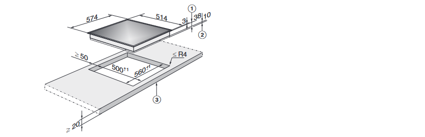 - Kochfeld mit ansprechendem Design - 574 mm breit mit umlaufendem Rahmen