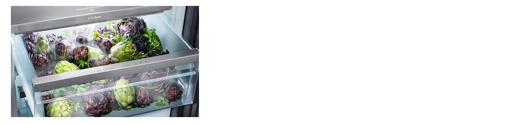 Lagern wie ein Profi. Lebensmittel bleiben bis zu 5 x länger frisch. Im automatisch geregelten Temperaturbereich zwischen 0 und +3 °C sind Fleisch, Fisch und viele Milchprodukte bis zu 3 x länger haltbar. Obst und Gemüse bleiben sogar bis zu 5 x länger frisch - dank der optimierten Feuchteverstellung an der Schublade. Für den perfekten Überblick ist zudem eine helle LED-Beleuchtung integriert.