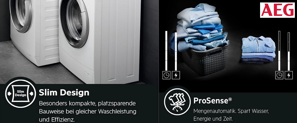 - Die AEG ProSense® Technologie ermittelt jede Beladungsmenge, um den Waschvorgang dahingehend anzupassen. Sensoren stimmen die Waschzeit, sowie Energie- und Wasserverbrauch individuell auf den Inhalt der Trommel ab. Ihre Textilien sehen nicht nur nach jeder Wäsche aus wie neu, Sie sparen außerdem auch Wasser und Strom.
