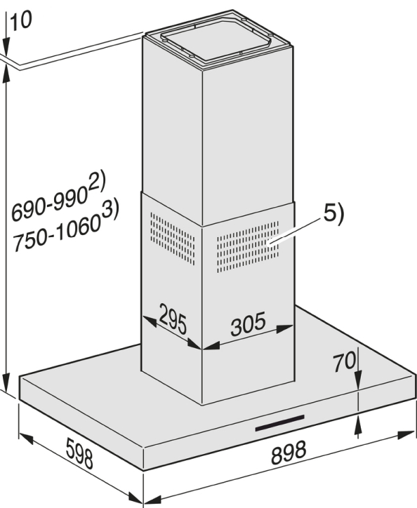 - Zeitloses Design – Edelstahl-Haubenschirm in 898 mm Breite
