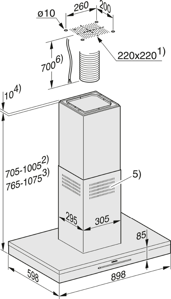 - Familiendesign - angelehnt an Miele Einbaugeräte mit 898mm Haubenschirm