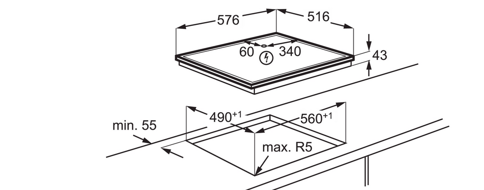 - AEG TA64RA07XB Kochfeld mit flachem Rahmendesign - Breite 576 mm