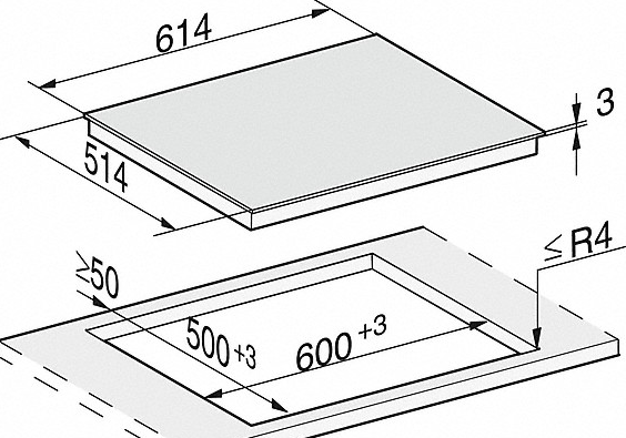 - In 614 mm Breite mit Edelstahlrahmen für aufliegenden Einbau