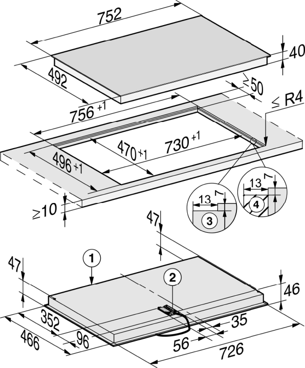 - 4 Kochzonen inkl. 1 Vario-Zone und 1 Bräter Zone