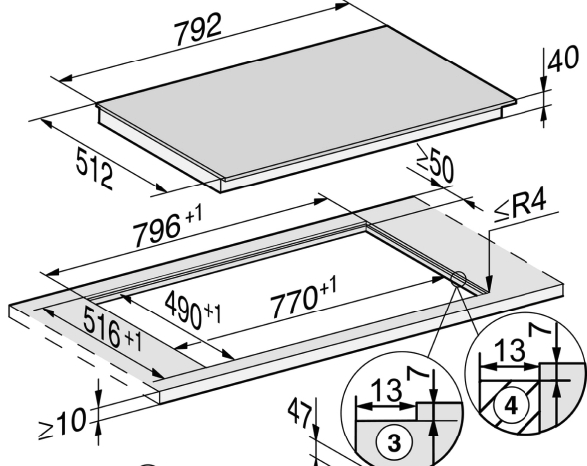 - In 792 mm Breite für den flächenbündigen und aufliegenden Einbau