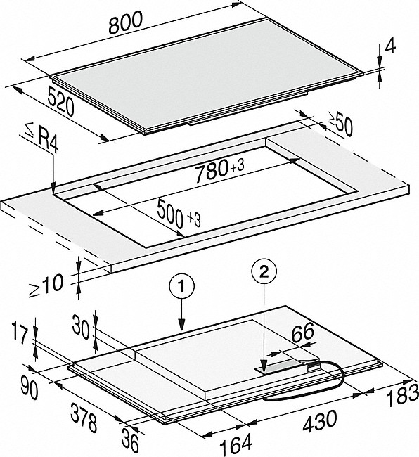 - In 800 mm Breite für den flächenbündigen oder aufliegenden Einbau