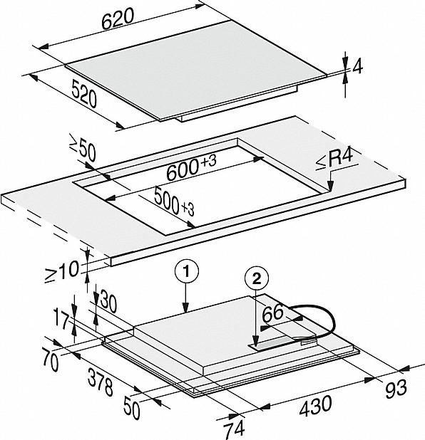 - In 620 mm Breite für den flächenbündigen oder aufliegenden Einbau