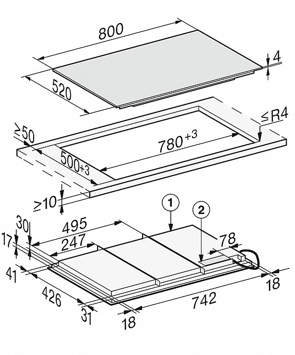 - In 800 mm Breite Rahmenlos für flächenbündigen oder aufliegenden Einbau