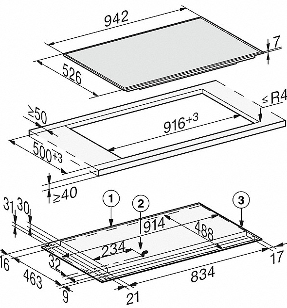 - In 942 mm Breite für den aufliegenden Einbau
