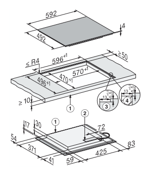 - In 592 mm Breite rahmenlos für aufliegenden oder flächenbündigen Einbau