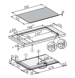 - In 792 mm Breite Rahmenlos für aufliegenden oder flächenbündigen Einbau