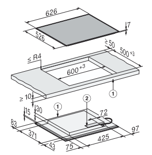 - In 626 mm Breite mit Edelstahlrahmen für aufliegenden Einbau