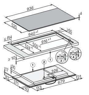 - In 936 mm Breite randlos für den flächenbündigen und aufliegenden Einbau
