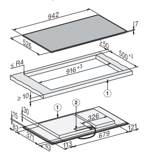 - In 942 mm Breite mit Edelstahlrahmen für aufliegenden Einbau