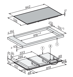 - In 942 mm Breite mit Edelstahlrahmen für aufliegenden Einbau