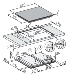 - In 620 mm Breite Rahmenlos für den flächenbündigen und aufliegenden Einbau