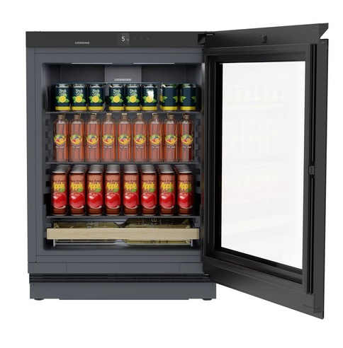 - Dieser Liebherr Getränkekühlschrank vereint Design und Funktion: Die dekorfähige Tür erlaubt individuelle Möbelfronten – für eine harmonische Wohnästhetik. Innen sorgt die LED-Beleuchtung für optimale Übersicht. Dank der integrierten SmartDeviceBox lässt sich das Gerät von jedem Ort aus ansteuern.